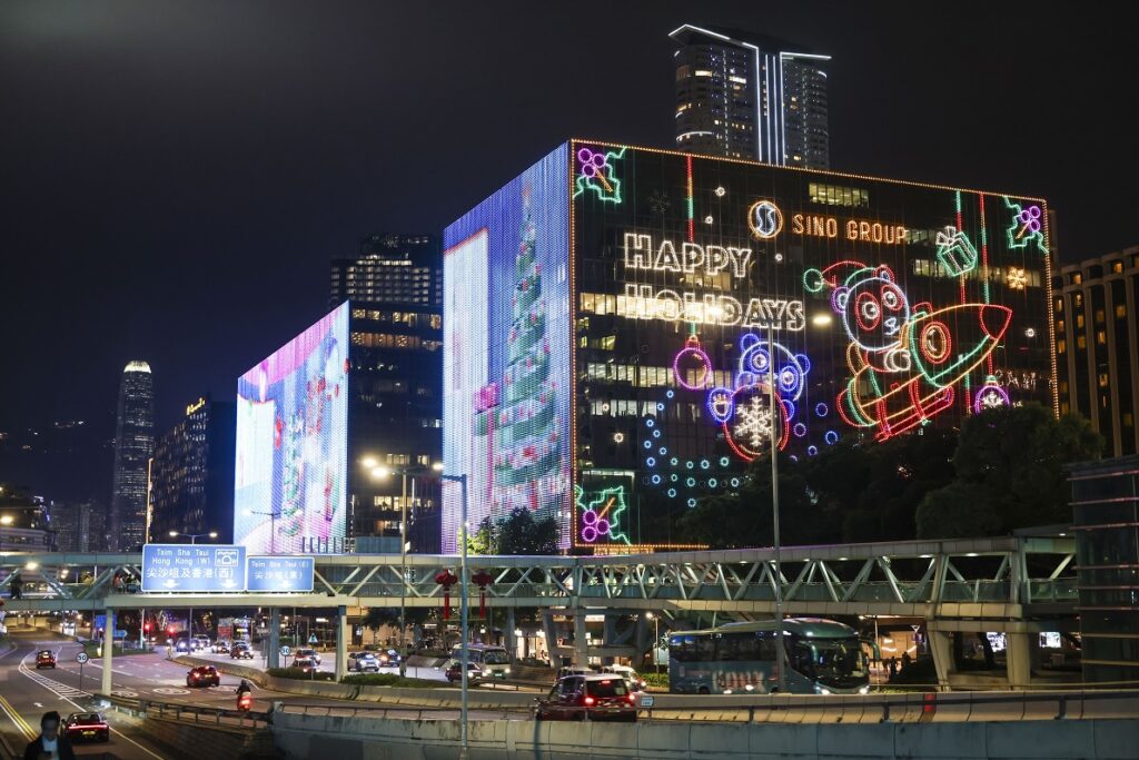 今年,尖沙咀中心及帝國中心將會展出全新「Pandastic Christmas」數碼光影藝術作品,萌趣熊貓可愛現身於光影幕牆之中,駕駛著閃亮火箭探索聖誕禮物工廠,透過繽紛夢幻旅程,向大家送上窩心聖誕祝福。而麽地里亦會延續動畫作品,萌趣熊貓跟迷人雪花在傳統燈飾下閃耀;千禧新世界香港酒店採用環保燈泡堆砌出金光閃閃的「垂珠」,為聖誕佳節平添璀璨氣氛,加上紅綠燈飾,閃耀亮眼,象徵喜樂處處。南洋中心外牆打造開心歡欣的聖誕景象,牆上掛上「Merry X’mas」字眼,為大家送上禮物和歡笑;永安廣場則以色彩繽紛又可愛的聖誕老人為主題,聖誕老人駕著車駛過本港地標,在煙花的映襯下閃出光芒,營造普世歡騰的喜慶氣氛;富豪九龍酒店以冬日雪影聖誕為主題,跟大家共度白色聖誕,感受到濃濃的聖誕喜悅;海景嘉福洲際酒店以火樹銀花為主題,採用紅色和銀色的節日裝飾搭配閃爍燈光,送上繽紛璀璨的節日祝福;帝苑酒店今年掛上三十八顆巨型雪花,附有閃爍動態效果,營造溫馨浪漫的冬日氣氛;九龍香格里拉內有精心佈置的聖誕裝飾,包括6米高的閃亮聖誕樹,亦有人見人愛的萌趣熊貓穿起聖誕裝跟大家會面,為大家送上無限聖誕驚喜;而香港警務處的可愛吉祥物「提子」,更首次走進麼地道三條天橋,穿起聖誕裝束跟大家會面,透過閃亮燈飾散發濃濃佳節氣息,為大家增添新意,過一個別具特色的「紫色聖誕」。