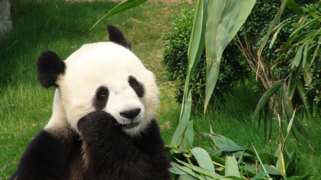 安安擁有修長而健壯的身體和圓圓的頭,耳朵毛茸茸,非常蓬鬆。眼神明亮動人,氣質非凡。喜愛悠閒地吃竹子,通常躺著豪邁地享用食物。