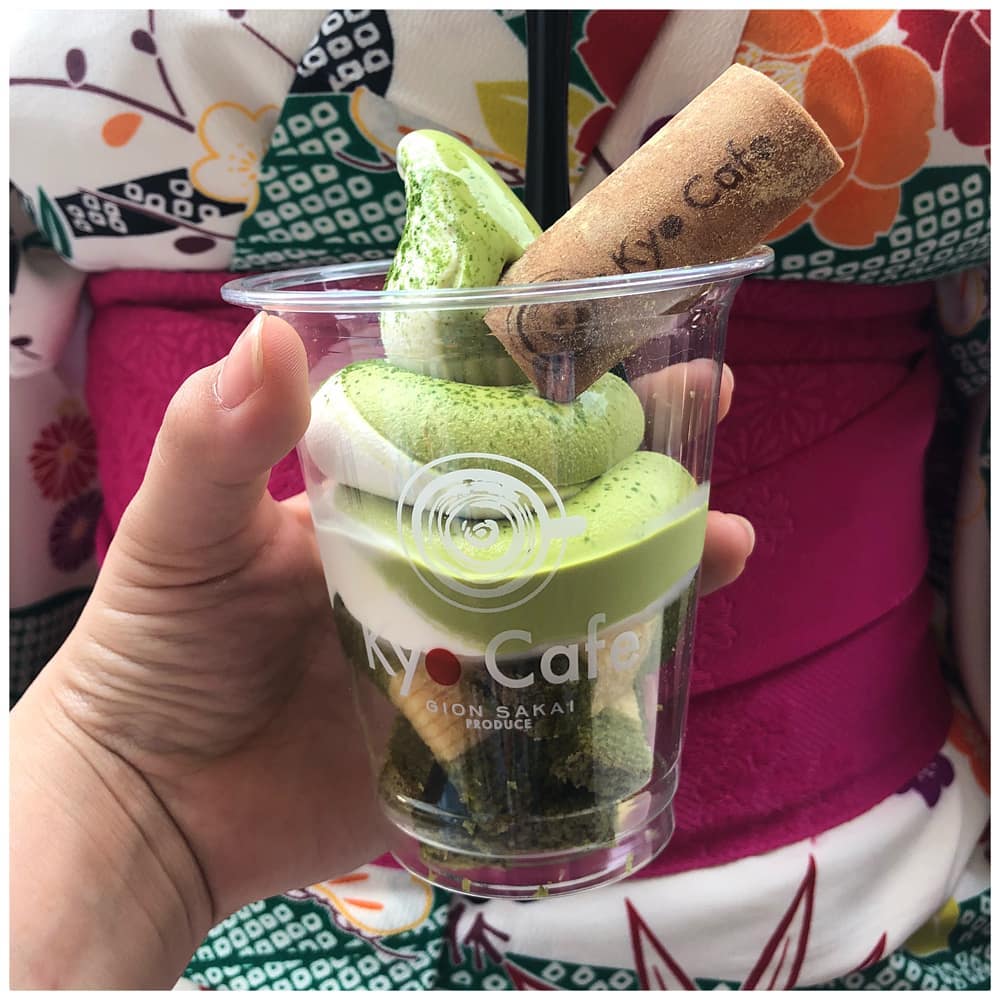 京都以抹茶製成的各式甜點更是遠近馳名,深受國內外眾人的喜愛。最近人氣超高的抹茶甜點的便是「Kyo-baum」。抹茶與豆奶調製而成的麵糊層層環饒成美麗的年輪,抹茶年輪蛋糕,極致美味的夢幻甜點就此誕生。