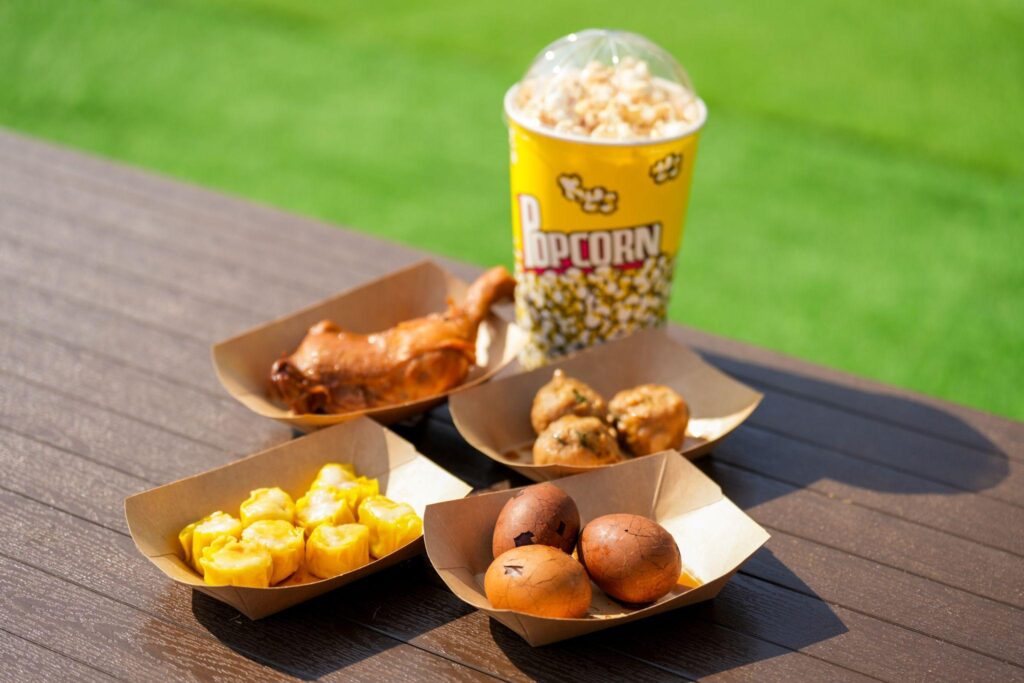派對當然少不了美食及飲品為你補充體力!現場特設飲食攤位出售滋味美食,當中包括台灣腸、熱狗、燒賣、迷你披薩、雞脾、杯麵及各式汽水等,而「黑夜彈跳派對」時段更會發售各款啤酒如嘉士伯、YAU及Somersby等(18歲或以上成人適用),盡情狂歡盡情喪跳,Cheers!