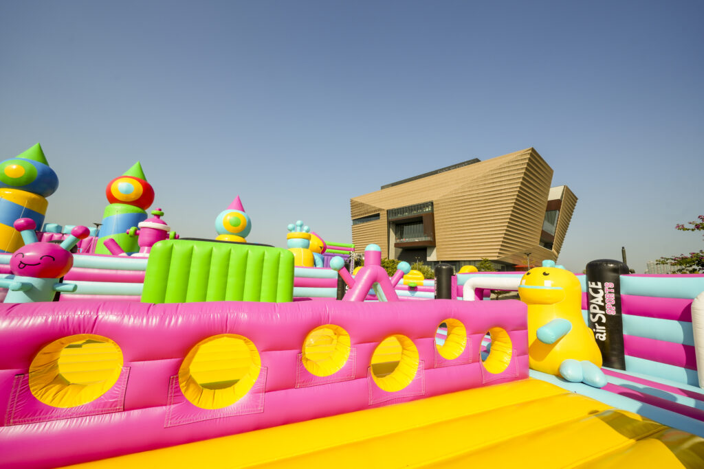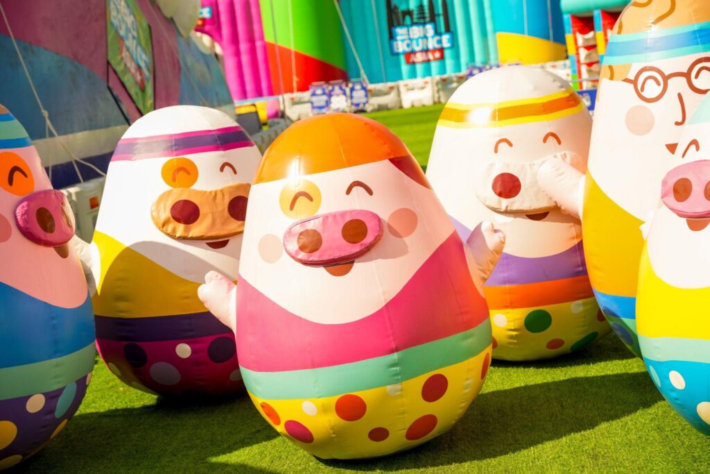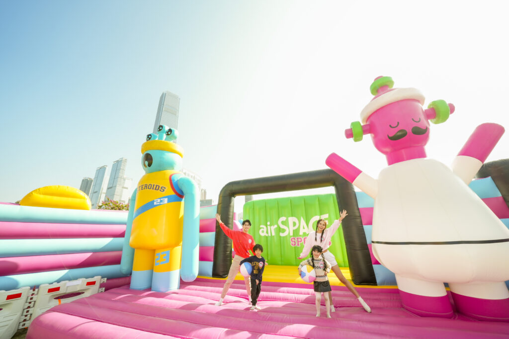 彈跳派對設有 4 個超巨型充氣遊樂區,包括佔地16,000平方呎的全球最大充氣城堡、超過150米長的障礙賽道The Giant巨無霸挑戰場、運動迷必玩的巨型運動場Sport Slam體育狂熱,以及充滿神秘感的太空主題airSPACE Pink Alien外星人堡壘!當中更包含多種互動性十足的玩樂元素,如競技籃球場、攀爬塔、多項球類運動、巨型滑梯及波波池等,適合好動的各位挑戰不同競技點,與家人好友來一場平衝力大戰!