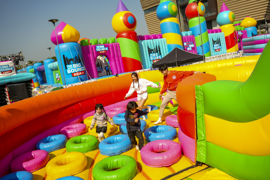 這座超巨型充氣堡壘佔地超過16,000平方呎,頂峰達10米高,是全球最大的充氣城堡。城堡裡有色彩繽紛的巨型滑梯、攀爬塔和籃球架,形狀大小各異,必然成為熱爆打卡點!在中央的活動舞台上,駐場DJ會根據觀眾的年齡層調整音樂,並主持小遊戲和比賽,將現場氣氛推至高峰!場次依年齡而定,不論小朋友還是大朋友,所有人都立即脫掉鞋子跳進這個巨型城堡,盡情彈跳吧!