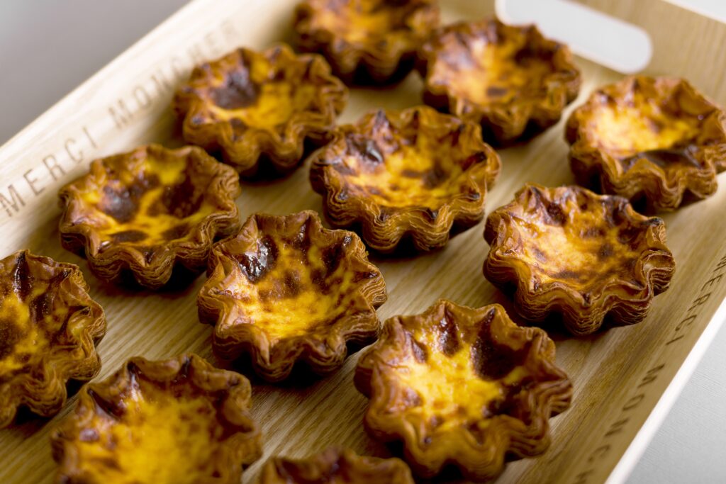 北海道牛乳酥撻(HK $14/件)– 在蛋漿中注入新鮮空運的北海道農場牛乳,再搭配層次分明的酸種酥撻底,帶來一種熱烘烘的享受。每咬一口都能感受到幼滑奶香與酥脆的酸種酥撻完美交融。
