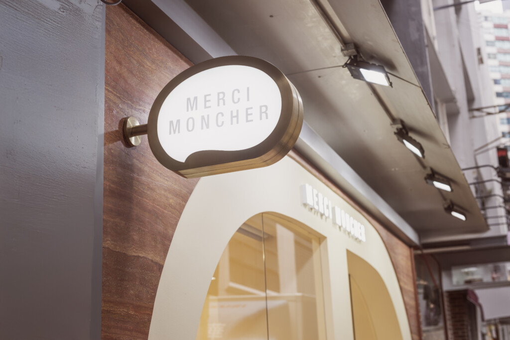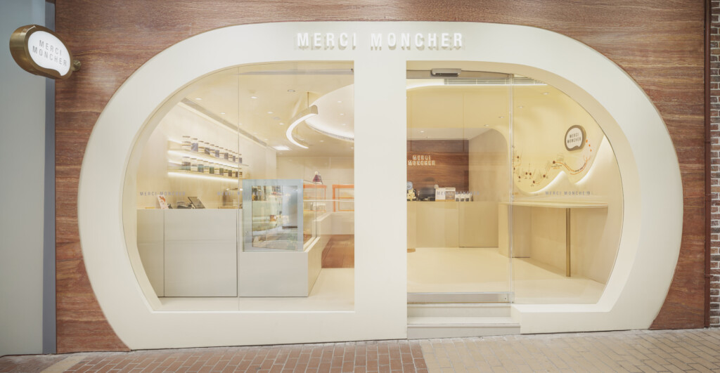 MERCI MONCHER 的首間海外店鋪選址於香港,採用「Bread & Sweets Boutique」的概念,為顧客提供即場烘焗的麵包。店內設計精緻,延續日本岡山本店的美術館與研究室風格,營造出悠閒的氣氛。店內外設有多個打卡位,正門的半圓拱形大門以 Mon cher 招牌的「堂島卷」為設計靈感,而店內一幅由天花延伸的「牛乳忌廉」主牆上則手繪了品牌發展的壁畫,這些視覺元素與美味的烘焙產品相結合,為顧客帶來全方位的味覺和視覺享受。