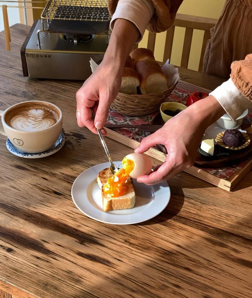 Moment Coffee主打自己動手烤麵包,可以自己選擇幾種特製果醬,滿滿的儀式感!店家烤土司用的是一個小小的瓦斯爐,待麵包上桌後,就可以開始自烤麵包了。