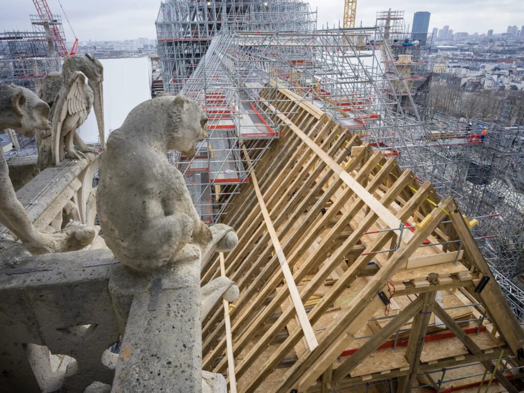 2019年大火摧毀了三分之二的屋頂,修復團隊遍尋法國數千棵橡樹,手工打造新屋頂,恢復歷史原貌。此外,新增的噴水裝置與隔離層大幅提升防火性能,確保建築安全。