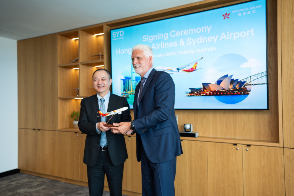 為慶祝這重要時刻,香港航空、悉尼機場、中國駐悉尼總領館、當地官方及旅遊局代表出席了簽約儀式。