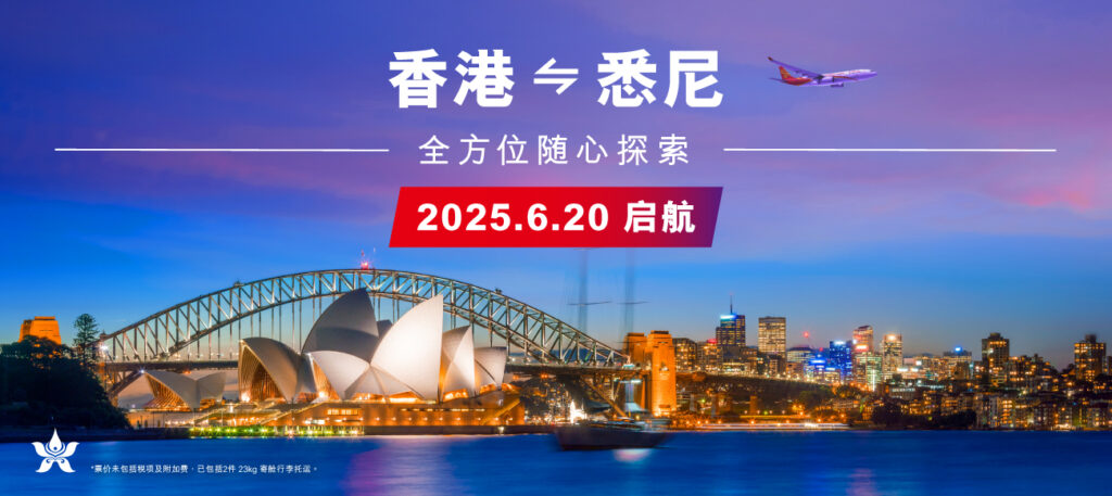 香港航空在航線網絡拓展上再創新猷,欣然宣佈將於2025年6月20日起開通澳洲悉尼直航服務,成為第二家本地註冊航空公司營運此航線,為往來香港與澳洲的旅客提供更多出行選擇,並促進市場競爭。新航線將以每日定期航班營運,也是香港航空繼1月17日恢復黃金海岸季節性航班後,今年開通的第二個澳洲航點。