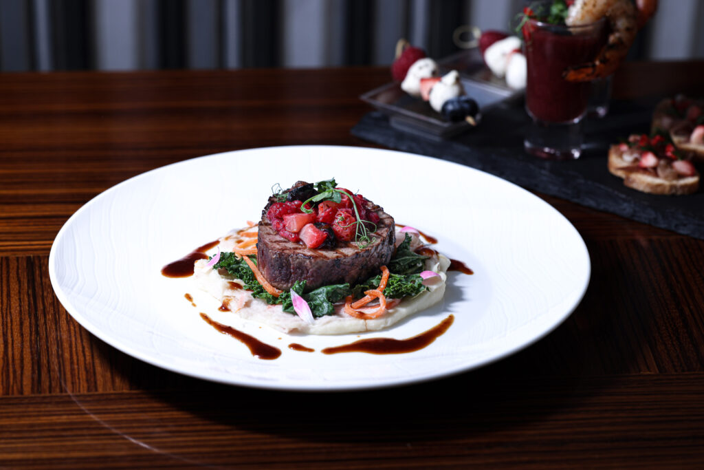 主菜部分採用由環球蒐羅的優質食材入饌,提供三選一主菜,包括:烤草飼牛柳配藍莓醬、慢煮雞胸卷配紅莓醬和香煎挪威三文魚配士多啤梨醬,每款主菜都配上一款果香四溢的果醬平衡菜式的味道,帶來了與別不同的餐飲體驗。烤草飼牛柳以炭烤方式烹調肉味濃郁的牛柳,配上鮮甜的藍莓醬,果香與肉味完美契合,令人回味無窮。慢煮雞胸卷以慢煮的方式烹調雞胸,肉質嫩滑多汁,搭配紅莓醬的酸甜滋味,味道層次豐富。香煎挪威三文魚外皮酥脆且富有魚油香,肉質細膩鮮嫩,每一口都散發著海洋的清香,士多啤梨醬的酸甜果香與三文魚的鹹鮮完美結合,令人一試難忘!