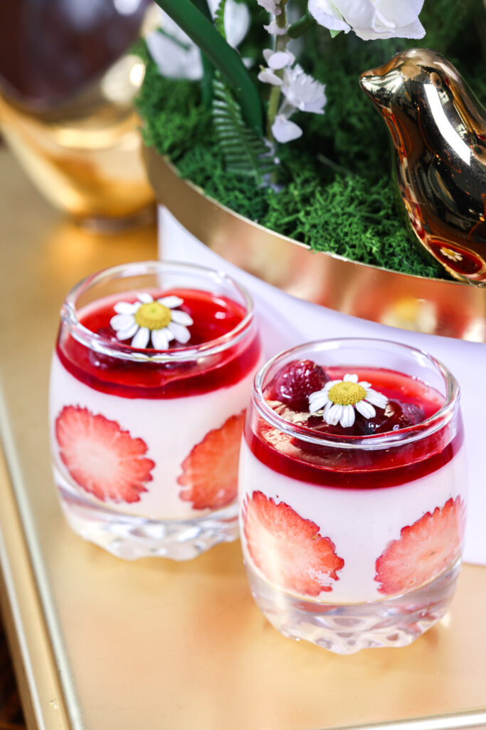 艷麗燦爛的「花朵」,盛載多款精緻甜點,包括:士多啤梨意式奶凍、士多啤梨沾朱古力醬、黑莓法式杏仁蛋糕 、玫瑰荔枝紅桑子年輪蛋糕、藍莓紐約芝士蛋糕、士多啤梨柑橘香蕉法式杏仁蛋糕和英式傳統鬆餅配奶油忌廉及自家製士多啤梨玫瑰荔枝果醬,款款都令人垂涎三呎,讓食客頓時彷彿置身於鳥語花香世界之中,帶來獨特的餐飲體驗!