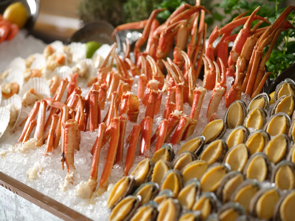 自助晚餐精選美食:海螺芝士焗大蝦、新鮮青口及鮑魚、多款刺身及精選壽司。中式菜式如避風塘炒辣滷豬腳、紅脆椒炒蝦、燜牛尾;烤物如蒜香烤生蠔、魷魚串、秋刀魚、比目魚;及各式精緻甜品和蛋糕,如朱古力噴泉、開心果桑莓蛋糕、芒果西米露、熱情果撻等。現場更設有調酒師現調雞尾酒。