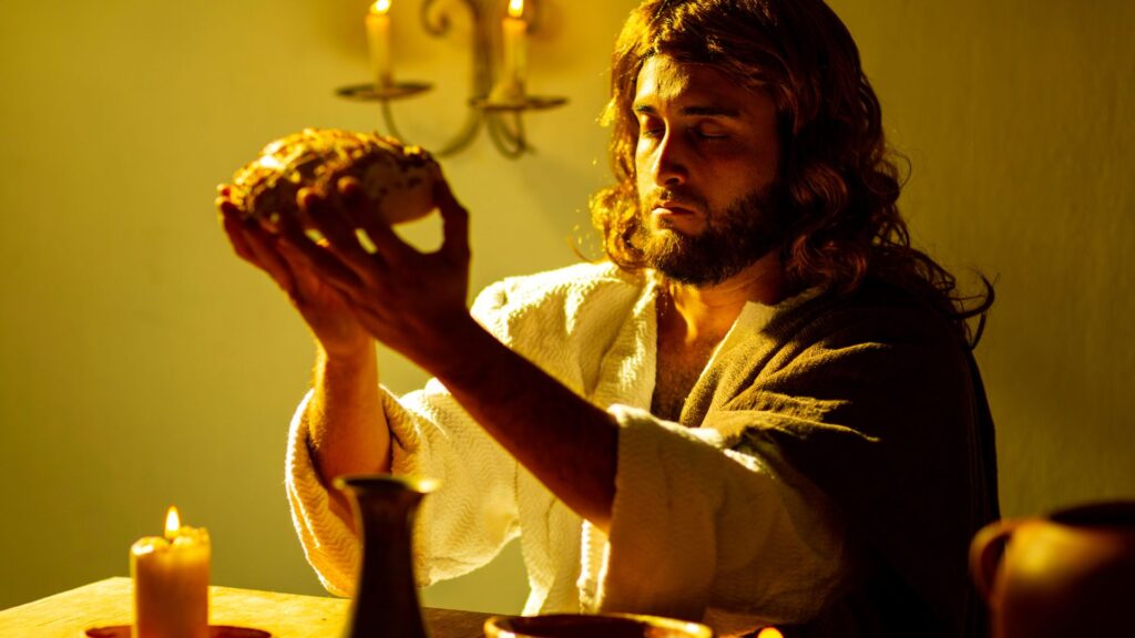 其實耶穌上十字架受審判前兩日, 吃完逾越節的晚餐之後,耶穌設立了另一個特別的晚餐。他把一塊餅遞給門徒,說:「你們吃吧,因為這代表我的身體,是為你們捨棄的。」然後他把一杯酒遞給他們,說:「你們喝這杯酒吧,因為這代表我的血,是為你們流出來的。」聖經稱這件事為「最後的晚餐」。