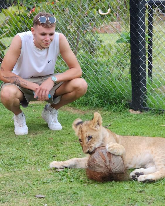度假村於2024年開幕,最大賣點是能近距離接觸幼獅,遊客還可以付費進入圍欄區與幼獅互動拍照。