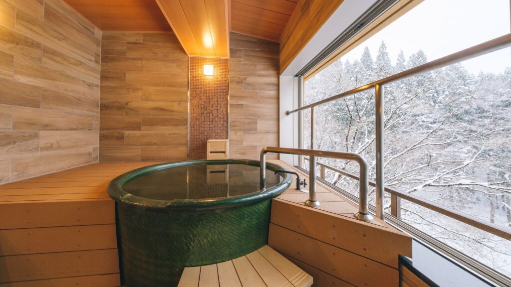 旅館位於田澤湖畔,展現出秋田地區獨有的文化與風情。客房以秋田雪松與杉木打造,充滿溫暖木香,體現傳統日式美學。旅館備有可租用的家庭溫泉,深受住客好評。此外,每間客房皆設有專屬餐區,讓人可在靜謐空間中細味以當地食材烹製的創意會席料理。