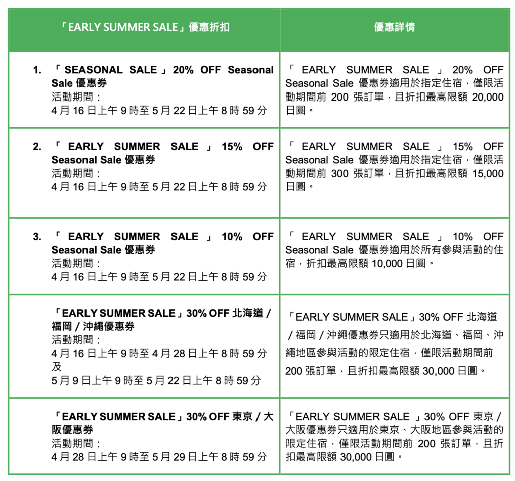 * 使用 Rakuten Travel 「EARLY SUMMERSALE」 配合優惠券預訂 , 最高可享56 折優惠