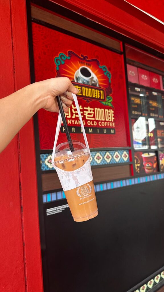 當然土司要配一杯南洋咖啡,個人選了冰鴛鴦,這款獨特的飲品融合了咖啡與黑茶,比例巧妙,一半濃郁的咖啡,一半清香的黑茶,並加入了煉乳,讓味道更加圓潤順滑。初啜一口,咖啡的濃烈與茶的清新在口中交織,隨後煉乳的甜味逐漸綻放,回味悠長。這種甜中帶苦、苦中帶甜的複雜口感,讓人忍不住一口接一口,完全無法抗拒。