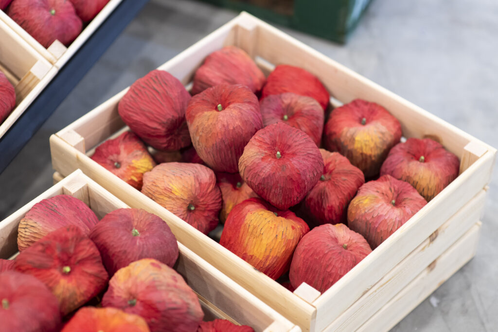 互動的展區讓訪客融入裝置藝術,像在香港熱鬧的 果欄中穿 梭一樣,挑選 自己喜愛 的「水果」,兩件水果作品的價格為港幣 1,000 元。