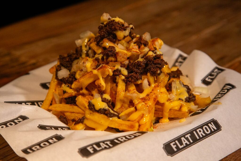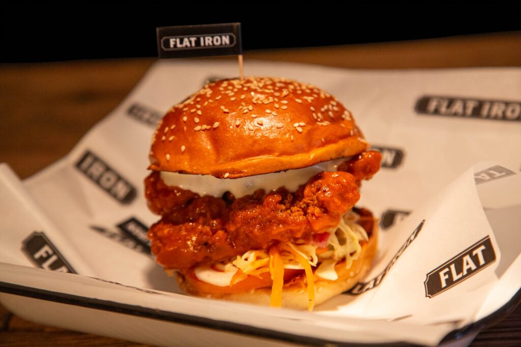 招牌 6 安士豪華版平鐵堡(港幣$138)嚴選優質安格斯牛肉,即叫即製,於平鐵板上撒上秘制調 味料後壓扁煎香,再疊加雙重美式芝士、五花煙肉、自家醃菜、香脆洋蔥及美式香料沙律醬,滋 味無窮。另外,香脆的平鐵魚堡(港幣$98)以金黃炸魚柳佐以他他醬、魚子醬薯仔沙律,綴以 美式芝士及特製黃金芝士醬,芝味濃郁,漢堡迷絕對不能錯過!