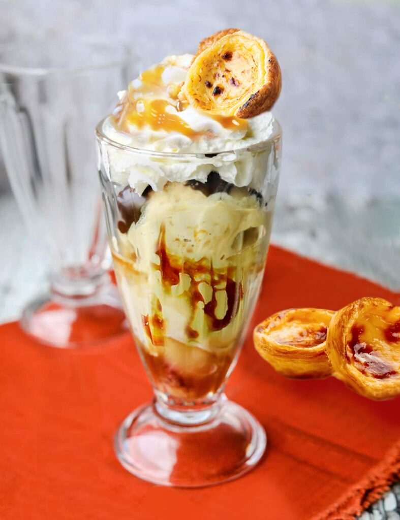 重點推介焦糖蛋撻平鐵奶昔,以奶香醇厚的雲呢拿雪糕為基底,加上以焦糖糖漿製飾 成的漩渦,玩味十足,頂層鋪上經典葡撻,打卡必備,是炎炎夏日必試之選!