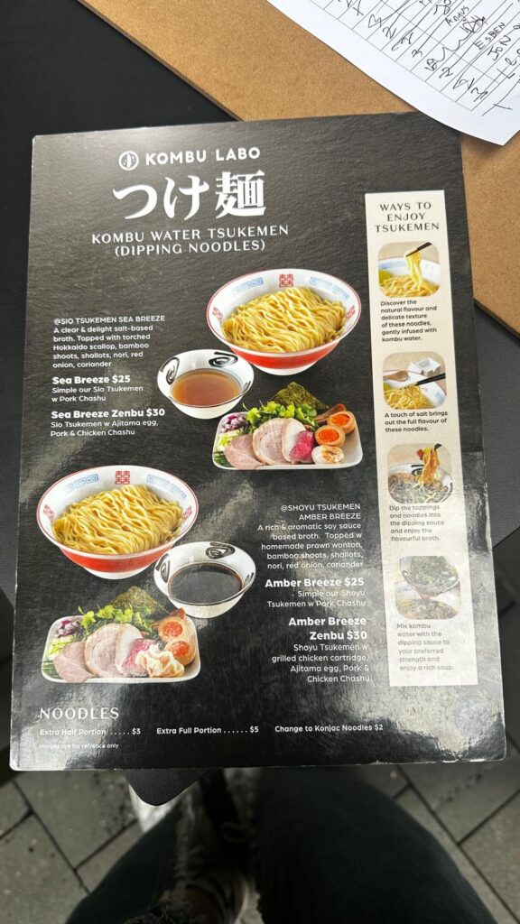 悉尼新開了一家日式拉麵店「KOMBU LABO」,是一家主打「昆布」概念的日式拉麵專門店,最近悄然開業便引起饕客關注。這裡不僅以健康清爽的昆布湯頭作賣點,還堅持每日自家製作手工拉麵,打造出一碗碗用心又有深度的拉麵與沾麵。店內菜單簡潔,僅提供兩款沾麵(Tsukemen)和兩款拉麵,讓人一目了然。