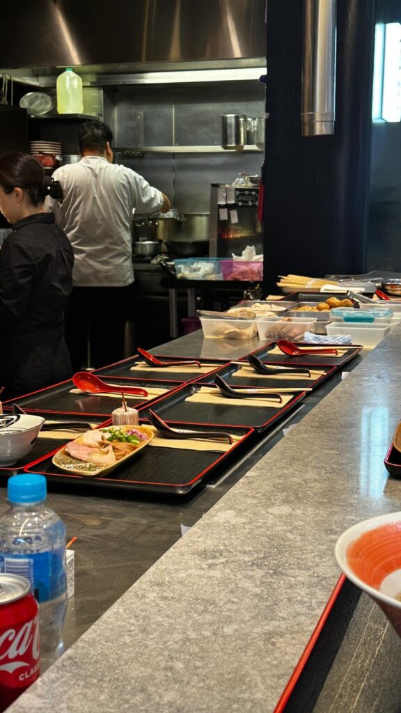 店內設計簡約雅致,木質裝潢配合溫潤燈光,營造出靜謐沉穩的日式氛圍。開放式廚房讓食客可親眼看到拉麵製作過程——從揉麵、壓麵、切條,每個細節都精緻講究,保證了麵條的Q彈口感與新鮮度。