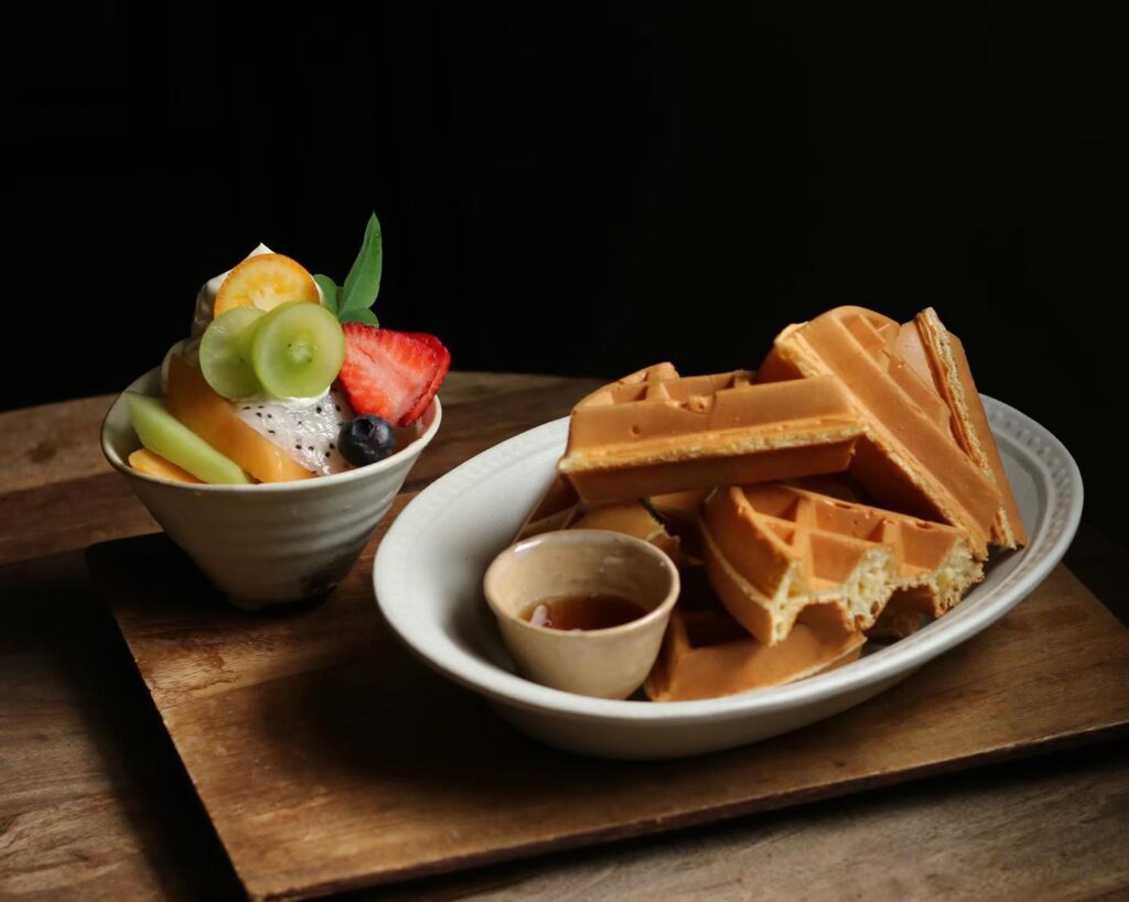 咖啡館供應的品項多元,有含湯與沙拉的正餐,也有鬆餅、蛋糕、日式布丁等甜點。