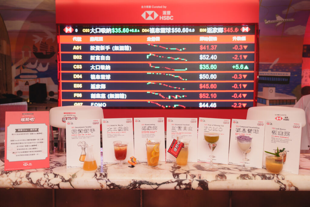 全港首間快閃「滙豐One理財吧!」今日正式開幕,一連四日呈獻與別不同的投資「第一試」體驗,鼓勵Z世代踏出學習投資第一步。參加者不但在場內的「特飲交易市場」的模擬入市體驗區透過七款以投資術語命名的主題特飲淺嘗「投資價格可升可跌」新鮮體驗,更投入理財目「鏢」王游戲中,在風險和回報中力求平衡,以賺取小食拼盤和其他回報。