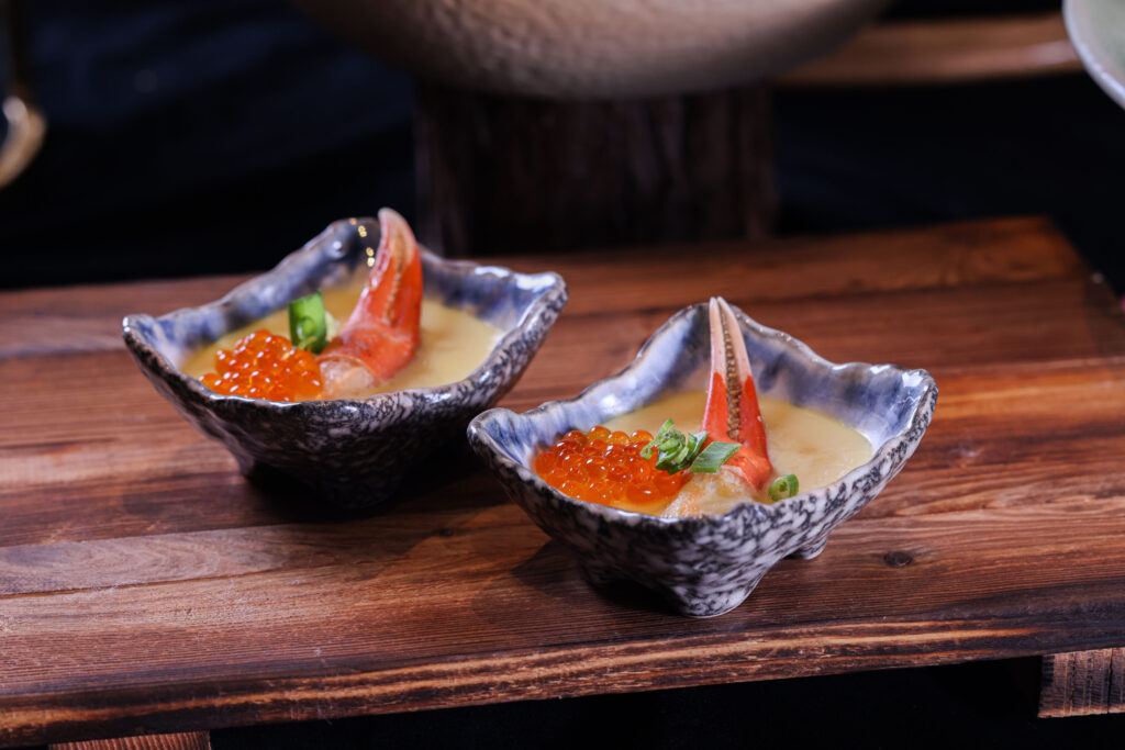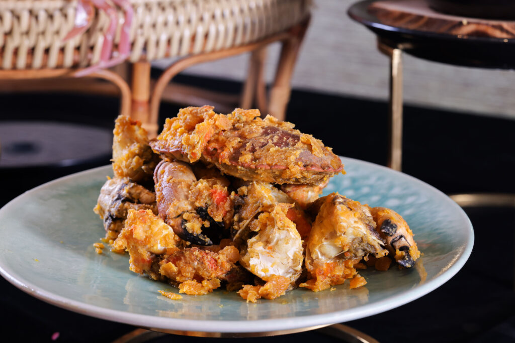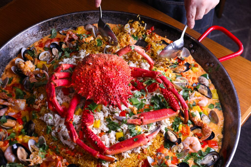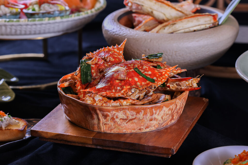 精選全日菜式包括:「蟹肉燉蛋」入口綿密嫩滑,以日式茶碗蒸做法,鮮香滿溢;「法國蜘蛛蟹海鮮粥」,以蜘蛛蟹和不同蟹肉及海鮮熬煮而成,蟹香鮮味十足;「海南雞伴蟹黃飯」,餐廳馳名的海南雞飯雞肉嫩滑,創新加入蟹黃令味道層次昇華。精選晚市菜式「火焰西班牙海鮮法國蜘蛛蟹黃飯」,由大廚現場以大鑊於自助餐區域呈現,於客人面前火焰燒灼,釋放濃郁鮮味。以西班牙海鮮飯做法加入多款海鮮烹調,蜘蛛蟹蟹膏豐腴,極致鮮味齒頰留香;