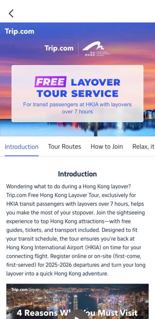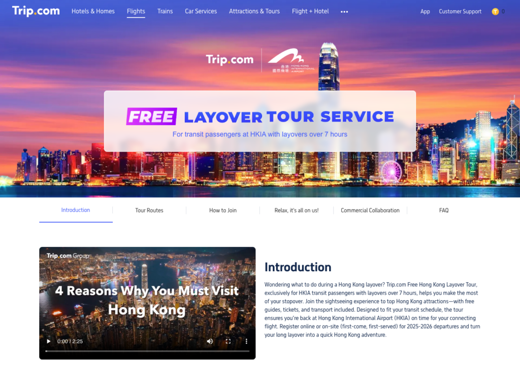 Trip.com已於過去一年在北京及上海率先推出免費半日遊項目,至今已免費接待逾14,000名轉機旅客。今次與HKIA的合作,標誌著平台在推廣目的地旅遊方面邁出重要一步。