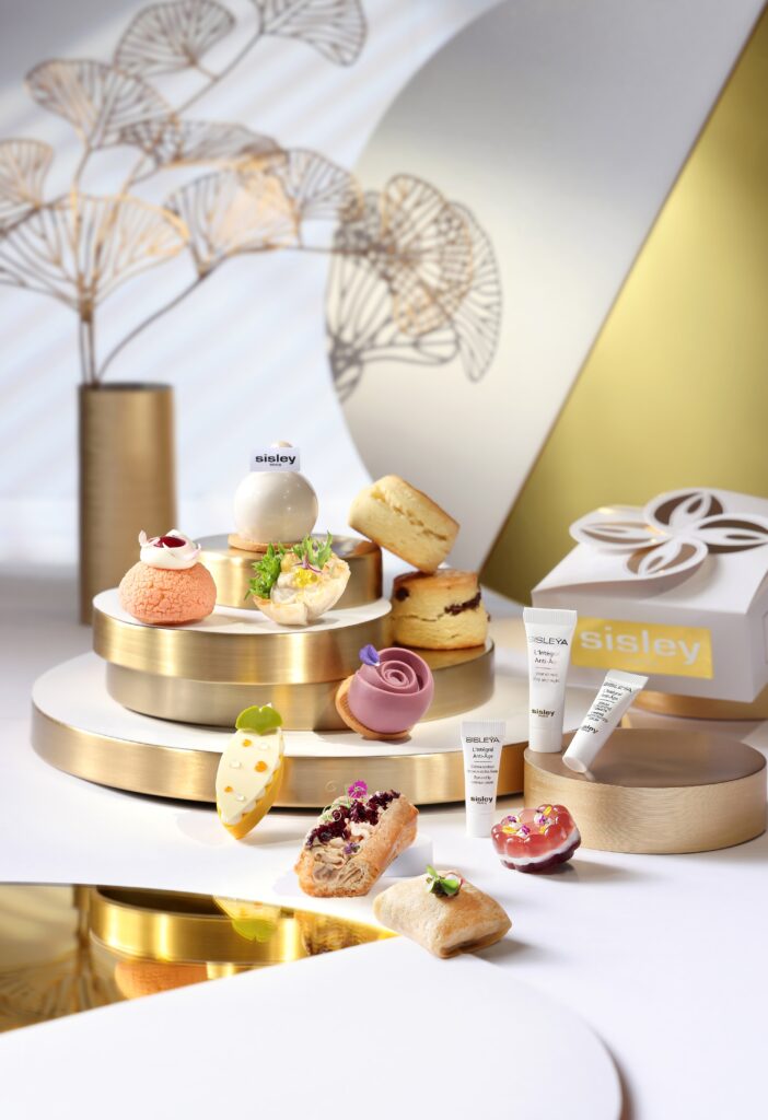 香港港麗酒店樂聚廊首度聯乘尊貴法國美容品牌Sisley,於2025年9月15日起至11月16日期間呈獻「金萃亮采」下午茶。為慶祝 Sisley 抗老科研的嶄新突破——SISLEŸA Longevity Essential Serum 活膚再生延美活源精華的推出,酒店廚藝團隊以Sisley的SISLEŸA活膚再生系列發揮巧思,融合當中主要的天然植萃元素如銀杏、豆乳、甜馬鬱蘭及薰衣草等,以及品牌標誌性的白金典雅色調,匠心打造亮麗奪目的的下午茶,讓您與閏蜜於午後時光開展一趟法式尊貴饗味之旅,從舌尖煥發肌膚亮麗光采。