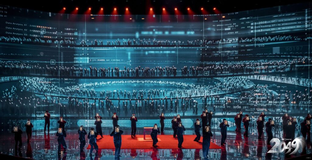 在澳門上演的張藝謀作品《2049》,是一場讓人目眩神迷的藝術盛宴。作為以宏大敘事和視覺奇觀著稱的導演,張藝謀再次突破舞台藝術的界限,將科技、舞蹈、聲光效果與中國文化完美交融,帶領觀眾穿越時空,展望未來。