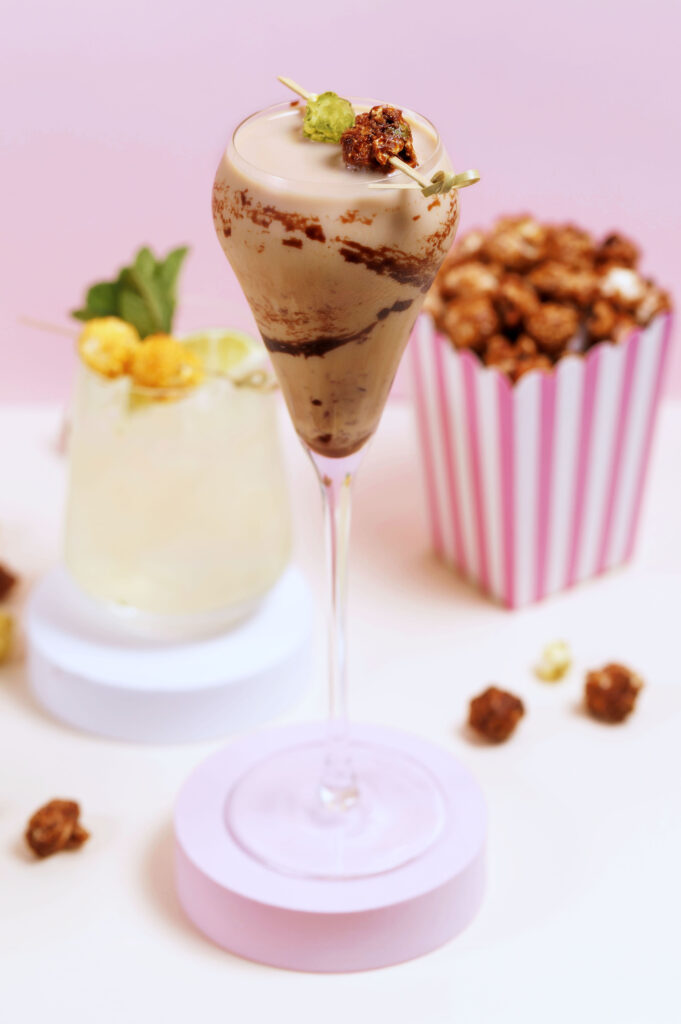 調酒師採用伏特加作為基底,加入GODIVA朱古力利口酒及百利甜酒,注入濃郁朱古力香氣及絲滑口感,再加入咖啡中和甜膩,並以大熱「杜拜風朱古力開心果爆谷」點綴,味蕾充滿驚喜。