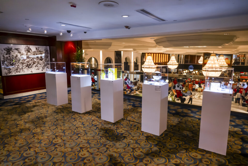現場亦設有多款獨家發售的周邊商品,除了新推出的《金政基︰無盡線條之旅》展覽目錄(港幣$380)、印有兩位藝術家作品的限量版朱古力(每件港幣$48)、Edward 熊貓咖啡杯套裝(港幣$420),以及黑芝麻芝士蛋糕和四季橘白朱古力馬卡龍等限定甜品(每件港幣$68)。活動區內更設扭蛋機,賓客有機會贏得眼鏡布、鑰匙圈及別針等限量紀念品,將藝術之旅的回憶帶回家中。