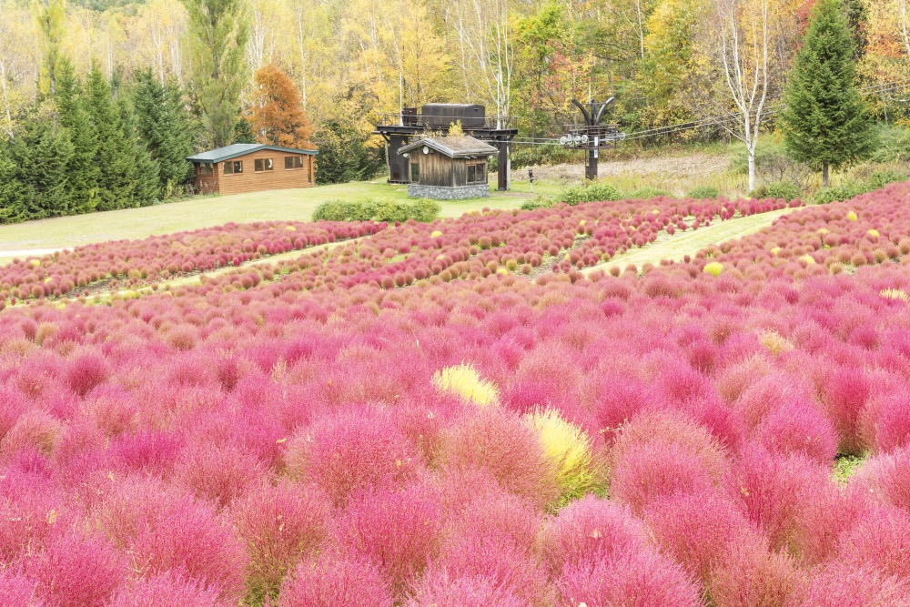 距離札幌稍遠,但綜合了楓葉、銀杏、波斯菊與掃帚草四季植物,秋日色彩非常豐富。