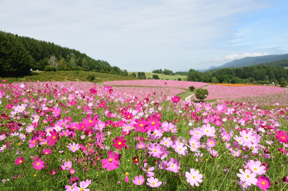 每年有超過千萬朵波斯菊盛開,能與北海道深秋藍天相映成趣。