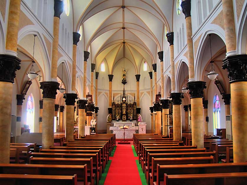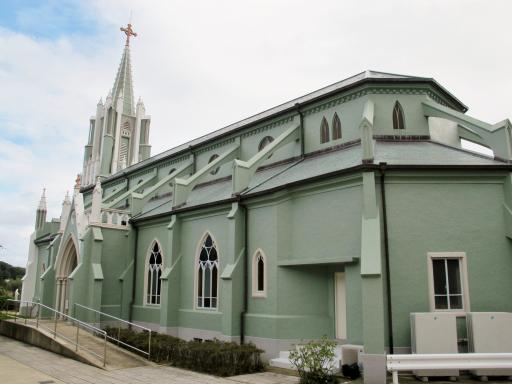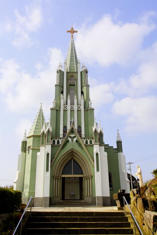 建築風格融合哥德式元素與日本地方特色,鮮明的綠色立面、尖頂十字、三廊式內部與灰泥雕刻裝飾,成為平戶城鎮中極具存在感的地標。