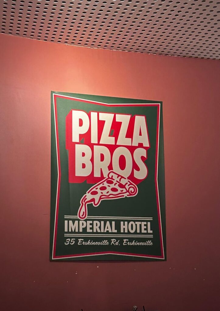 在悉尼眾多披薩店之中,Pizza Bros 是那種一試就會念念不忘的存在。坐落於 Erskineville 的 The Imperial 酒店屋頂,這間由兩位好兄弟創立的披薩小店,成功把街頭靈魂帶進了潮流屋頂派對的氛圍之中。熱情、隨性、帶點搖滾味,這裡不只是來吃披薩,更像是來朋友家開趴。環境輕鬆又充滿個性,高腳桌與戶外座位圍繞著炭火烤爐,空氣中飄著木柴燃燒的香氣與乳酪的濃郁,還沒開動,味蕾已經先被喚醒。