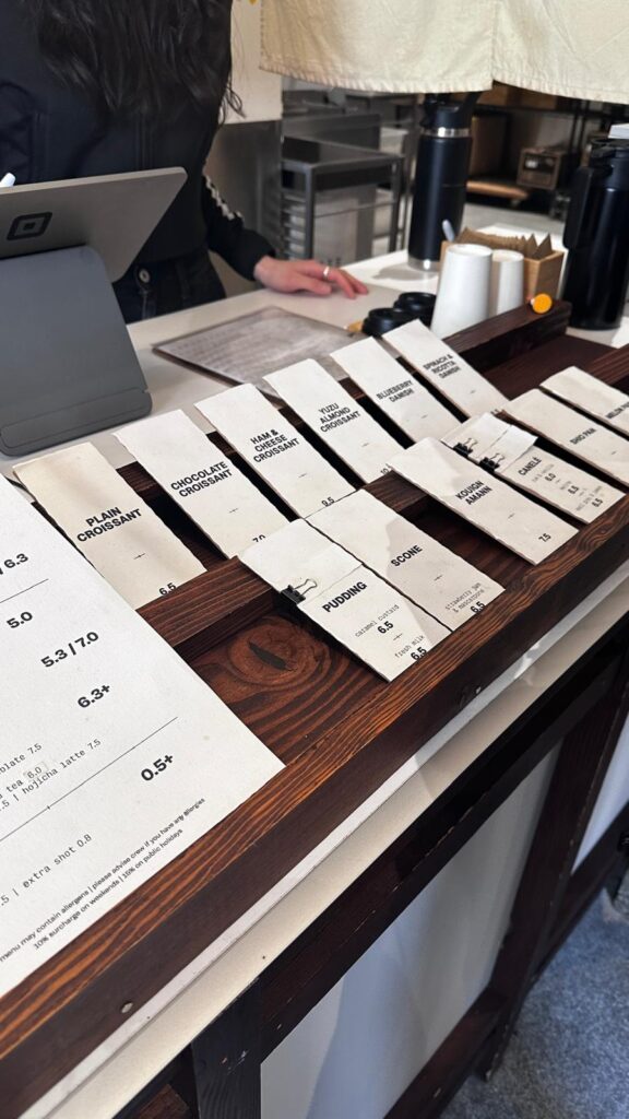 走進 Drewery Lane,你會被那低調的木質門面吸引。店內設計簡潔清新,大面落地玻璃窗灑入自然光,工作台後的烘焙師傅專注操作,揉麵、折酥、出爐的過程全都一覽無遺,彷彿一場烘焙劇場。這裡以外帶為主,但小巧的立食空間也足夠你站著品嚐剛出爐的熱騰騰麵包。