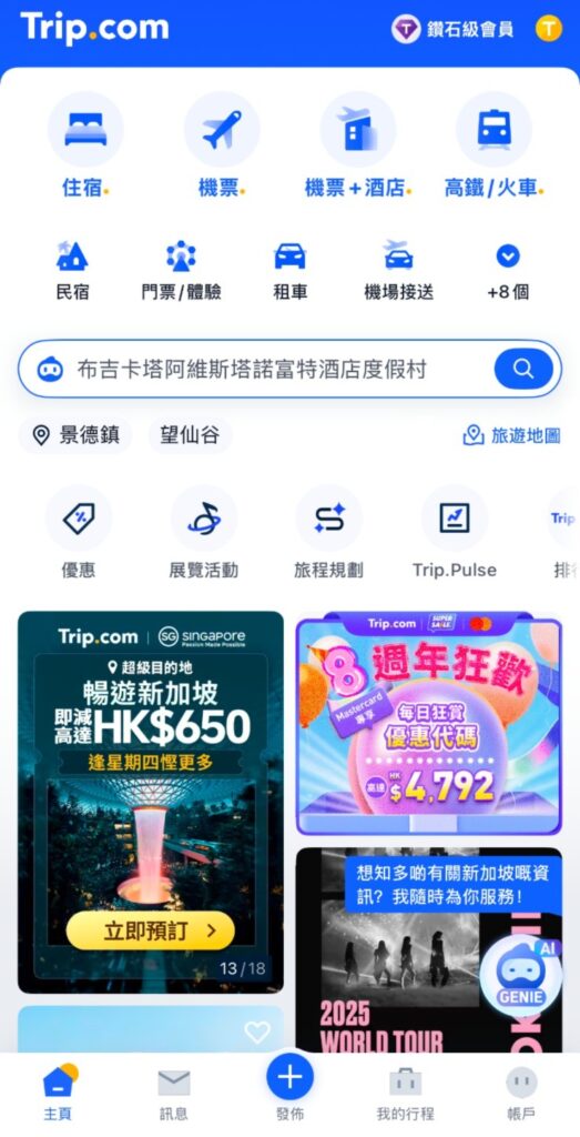 新加坡旅遊局更拓闊推廣渠道,於Trip.com的AI人工智慧旅行助手 TripGenie 新增由新加坡旅遊局設計的行程,將更新穎玩味的行程建議加入至 TripGenie,無論是一家大小的親子遊,或是一班朋友的快閃遊,都可以一Click獲取個人化的行程,毋需再苦惱行程規劃,輕鬆玩盡獅城最人氣新潮的必去景點。驚喜快閃優惠陸續登場 機票、酒店合共減高達HK$500 逢星期四慳更多。