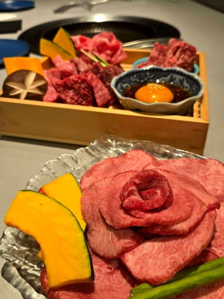 招牌菜色「名物八段盛」最受歡迎,以階梯式呈現多達八種部位,一次品嚐雌牛肉的多層次風味;想更奢華一些,可試「特選夏多布里昂(シャトーブリアン)」,極厚切沙朗油香馥郁、口感細緻。若想感受創意,壺漬橫膈膜與燒壽司也是旅人間的隱藏版人氣選項。