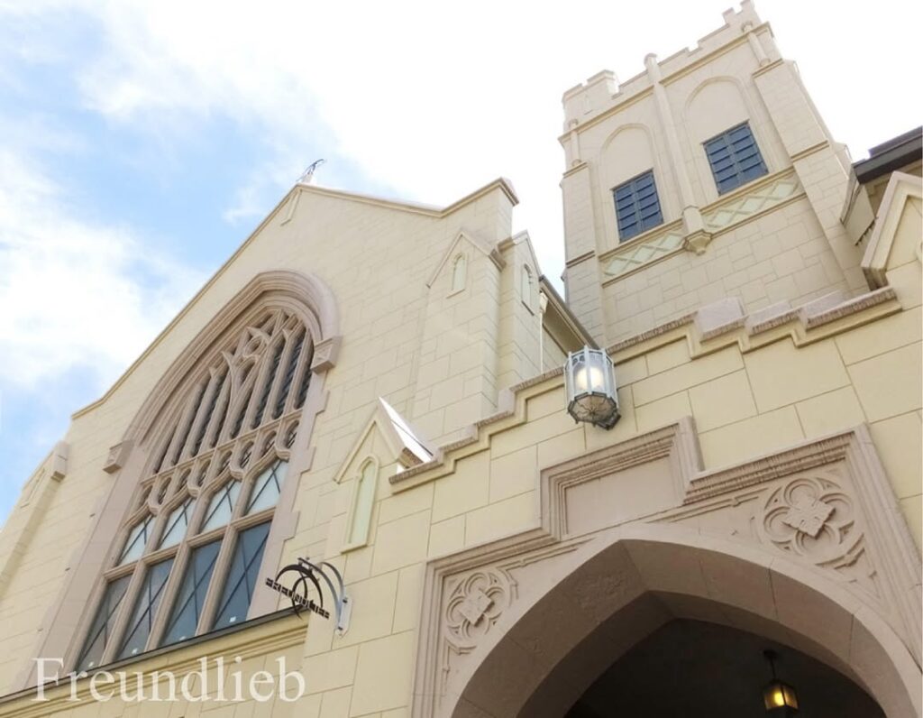 FREUNDLIEB 本店最大的魅力,莫過於它的建築本身——原為 1929 年建造的 神戶聯合教會(神戸ユニオン教会)。戰後因地震受損,後由 FREUNDLIEB 接手修復,將古典建築改建為咖啡廳與烘焙工坊。