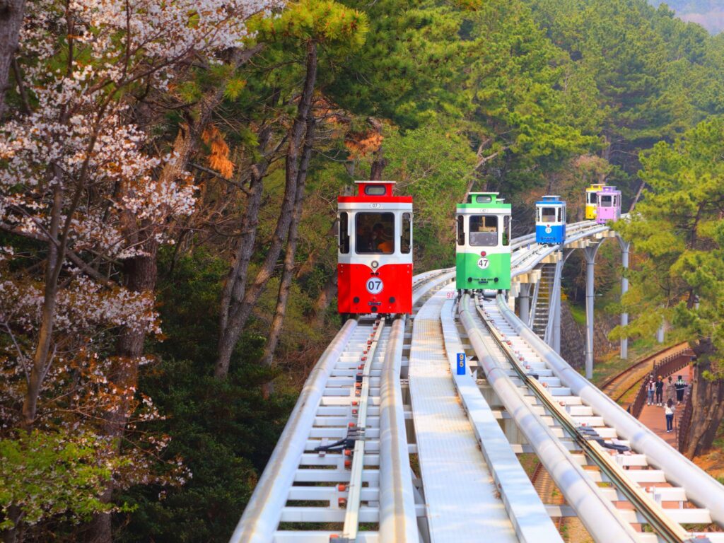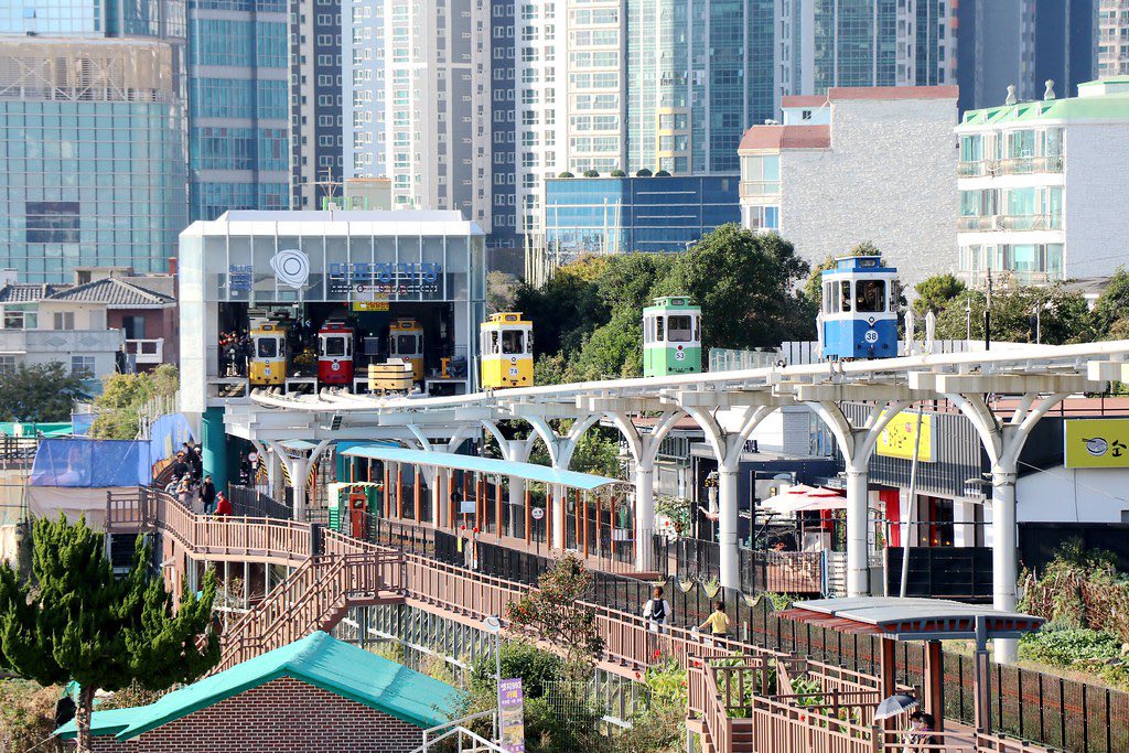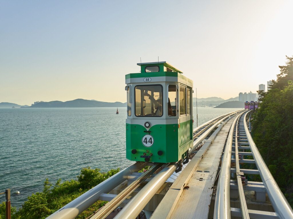 這段海景列車是釜山行程中最療癒的一站!小小的彩色膠囊車廂沿著海岸慢慢前進,窗外的藍色海洋閃著陽光,彷彿坐進明信片裡。