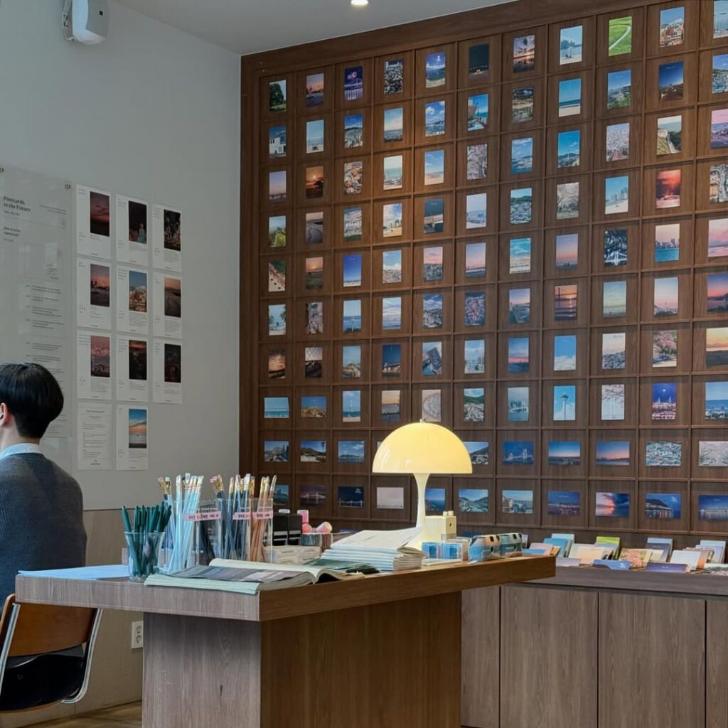 木質調空間與文藝明信片牆,最適合靜靜寫一張卡片給未來的自己。