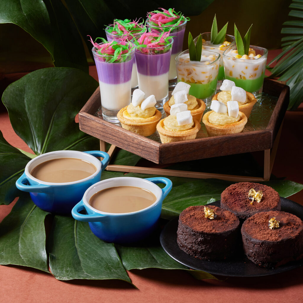 甜品桌同樣洋溢南洋風情。馬來咖啡合桃露以香濃馬來西亞咖啡融合中式糖水,入口香醇順滑;斑蘭鹹椰漿粟米糕口感清新,椰香撲鼻;榴槤鮮奶麻糬撻則以濃郁榴槤餡料搭配鮮奶麻糬及酥脆撻皮,為整場盛宴畫上圓滿句號。
