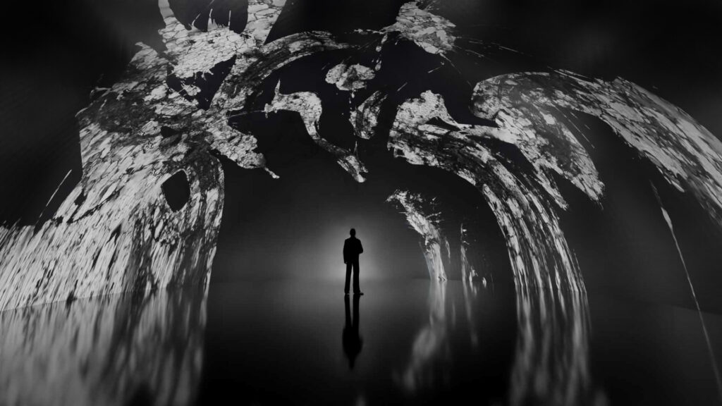 張瀚謙 (h0nh1m)與書法家許靜、粵劇演員梁非同合作,透過肢體語言與數位影音跨媒介重新詮釋中國書法,延續張氏繼香港故宮文化博物館及M+後對東方美學的探索。