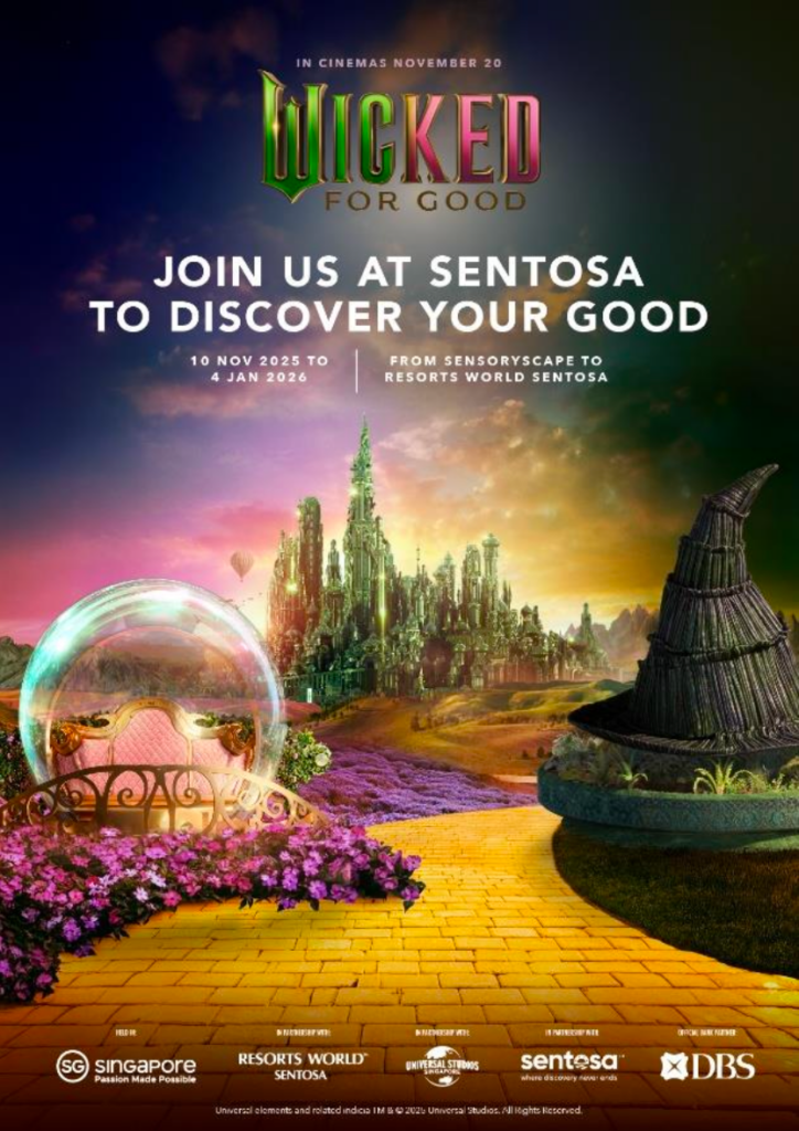 為迎接今年的聖誕假期,聖淘沙將化身為如奧茲國一般的奇幻仙境,慶祝備受期待的電影《Wicked:For Good》將於 11 月 20 日上映。從 2025 年 11 月 10 日至 2026 年 1 月 4 日,新加坡聖淘沙名勝世界將與環球影業、聖淘沙發展局、星展銀行和新加坡旅遊局攜手合作,誠邀你踏上一段夢幻旅程。島上佈滿沉浸式的裝置、天馬行空的互動體驗,以及奧茲國主題的美食與精品。在島上你將親身發掘友誼的魔力,驚奇的魅力,以及行善的力量,讓每一個精彩瞬間都帶來意想不到的驚喜。
