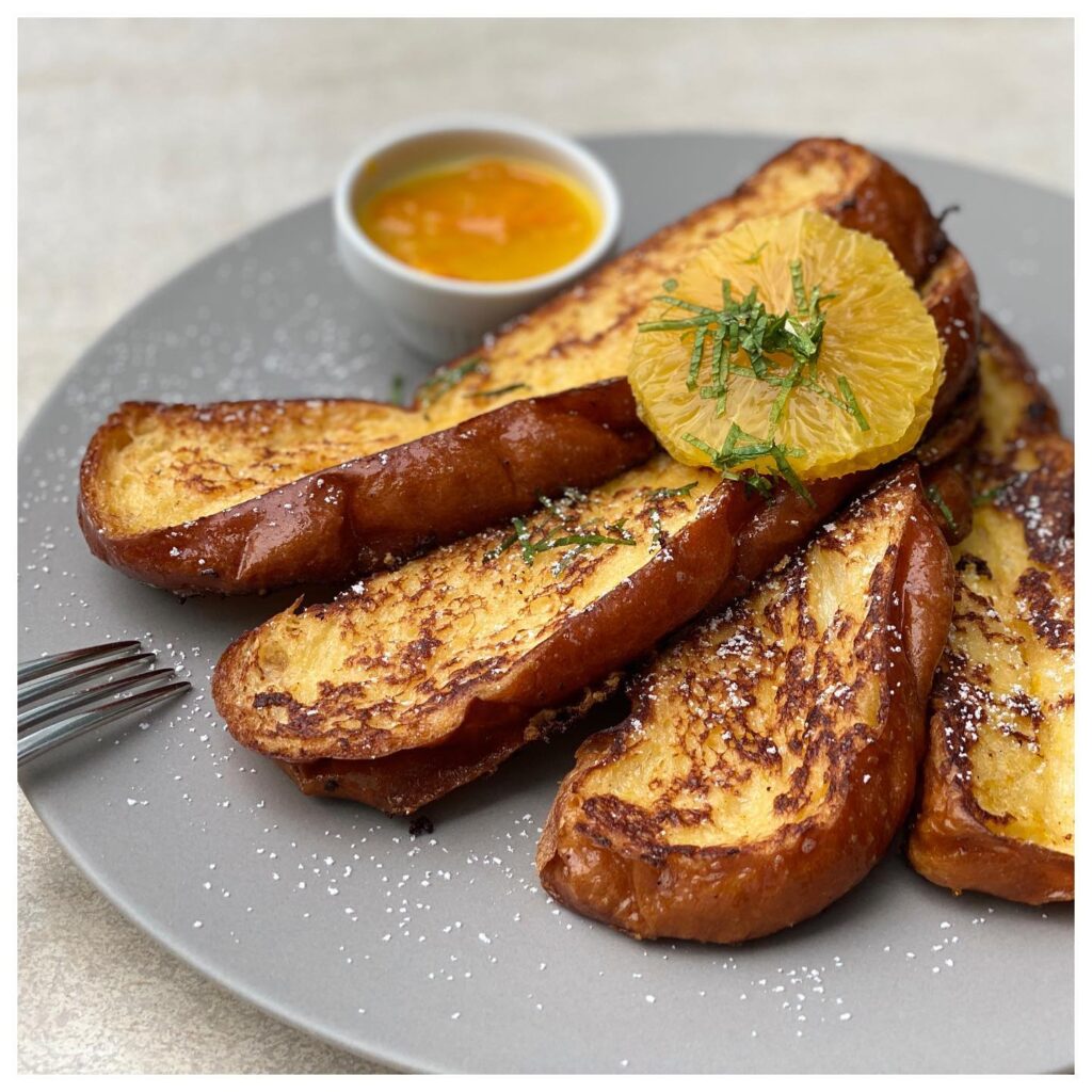外酥內軟的法式吐司,厚切吐司浸滿蛋奶液後煎至金黃,是視覺與味覺都非常滿足的一道主角。如果想拍出紐約感,可以用手機或相機將楓糖漿緩緩淋下的瞬間。