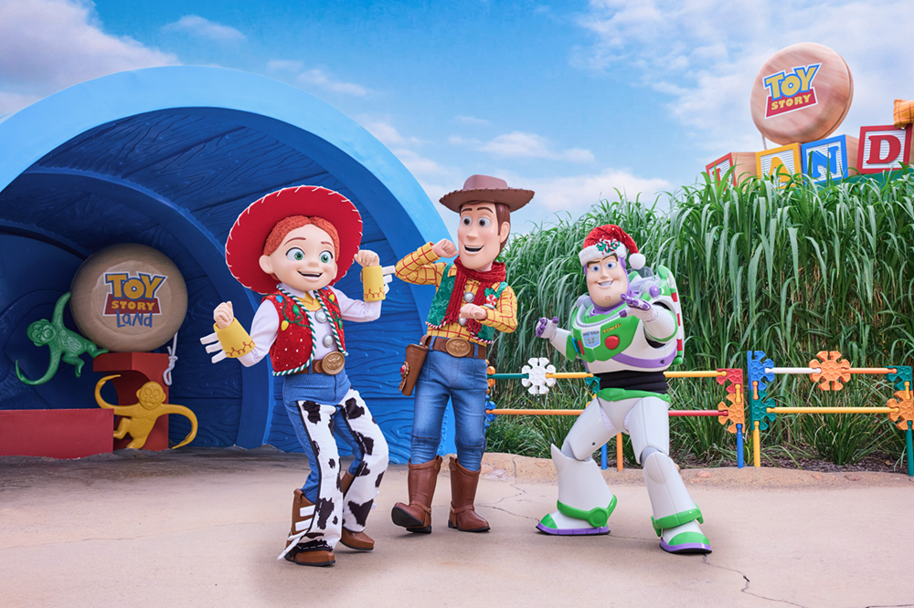 迪士尼朋友已換上冬日服飾,在園內各處連開派對!於反斗奇兵大本營內,胡迪、巴斯與翠絲將首次以全新聖誕造型迎接到訪的玩具朋友;