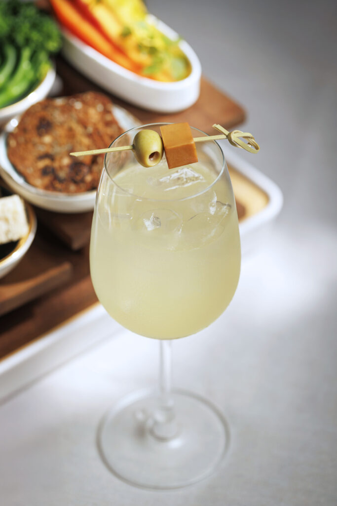 調酒師以雷司令白酒與椰子蘭姆酒為基底,注入滿滿的熱帶菠蘿果香,最後以獨特的「挪威焦糖芝士粒」點綴,其鹹甜風味讓清新酒品充滿驚喜。