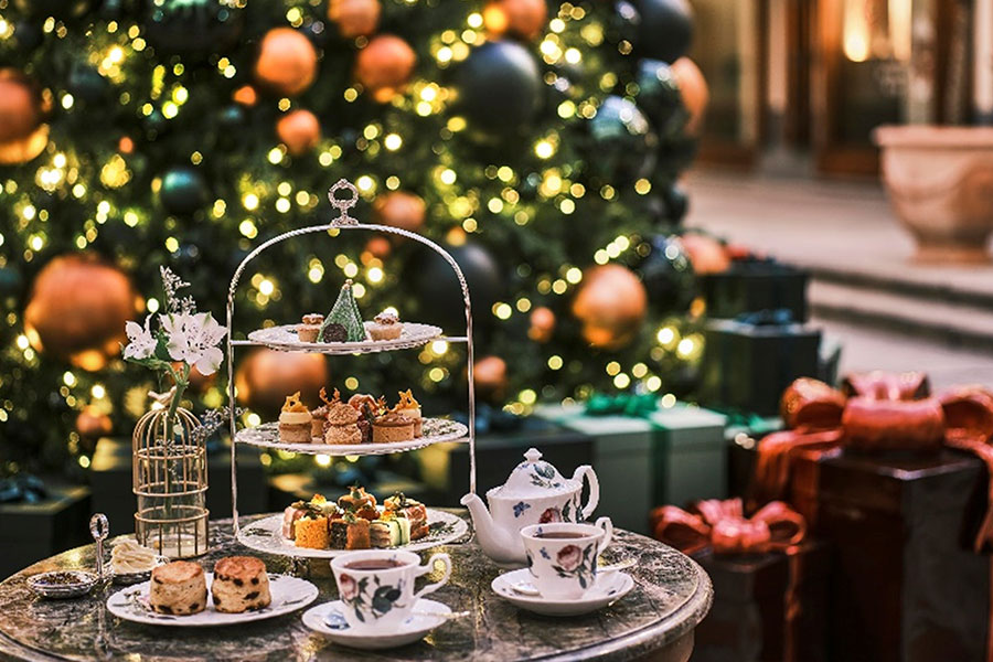 於淺水灣影灣園的戶外棕櫚庭細味限定節慶下午茶,並在高聳巨大、以璀璨燈飾佈置的聖誕樹旁拍照留影,陶醉於現場音樂帶來的悠揚樂韻,享受温馨歡騰的冬日體驗。